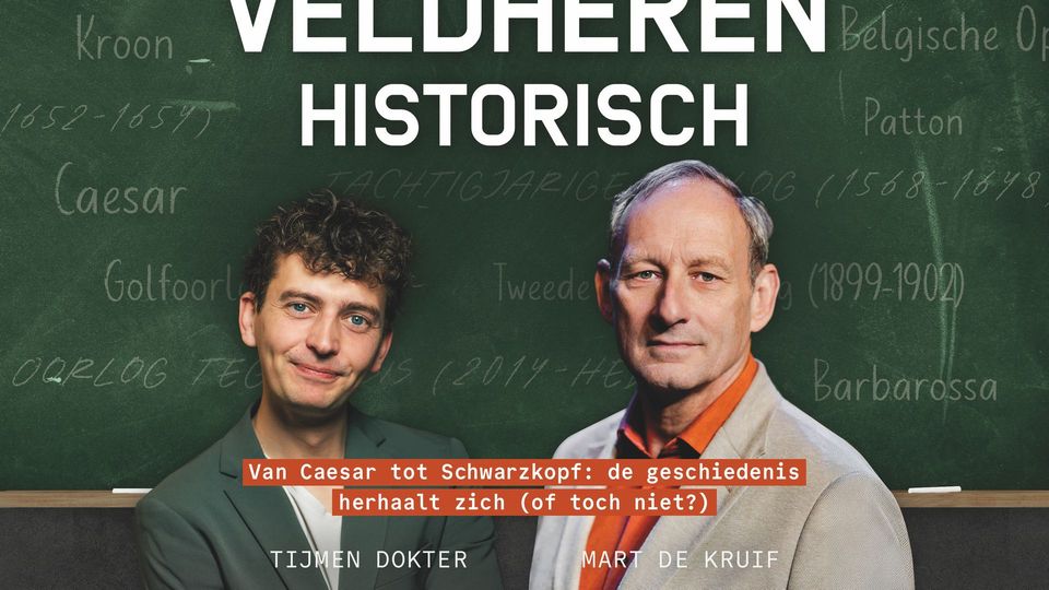 Elke oorlog leek ooit ondenkbaar. Toch kwamen ze. In Veldheren Historisch onderzoeken generaal Mart de Kruif en reservist Tijmen Dokter de oorlogen die de wereld hebben gevormd – én de actuele dreigingen die voor ons liggen. De centrale vraag: wordt het ook hier oorlog?