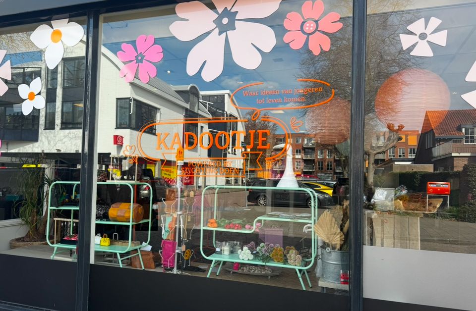 Op 11 april openen wij feestelijk KADOOTJE Pop-Up store. Een prachtige locatie in Jutphaas waar ideeën van jongeren tot leven komen. De winkel is een samenwerking met Stichting DOEN waarbij Jonge Ondernemers worden geholpen door Stichting De Ruilfabriek. Je shopt er de allerleukste kadootjes.