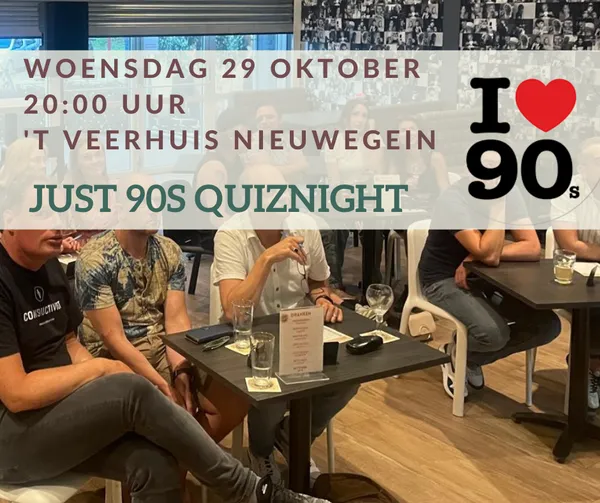 Trek je te gekke outfit aan. Maak een leuk team en test je kennis van de muziek uit de 90e jaren. Ben jij die allesweter, of heb je echt je team nodig? Durf jij met je team de uitdaging aan , meld je dan aan voor deze te gekke pubquiz in het restaurant van 't Veerhuis. Aanmelden kan via: https://www.nostalgischenoten.nl/product/19860617/t-veerhuis-woensdag-29-oktober-just-90s-quizavond