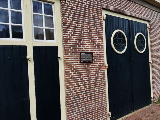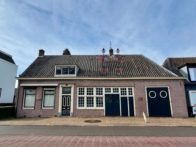 Deze oorsponkelijke smederij is gebouwd tussen 1800 en 1825. Het historische smederijinterieur is bewaard gebleven. Kort na 1903 is het smeedijzeren ornament met de tekst 'Hoefsmederij'op het dak geplaatst. Tot omstreeks 1930 was ook de dorpswaag in de smederij gevestigd. Hier lieten de boeren hun koopwaar wegen. Voor de smederij ligt in de stoep de koelput met granieten rand. Anno 2021 woont in het woonhuis de laatste smit C. Veldhuizen die het bedrijf 15 jaar geleden beeindigde. Het een-lagige dwarshuis is halfvrijstaand. Aan de linkerzijde bevindt zich het woongedeelte.