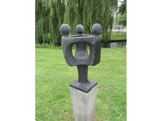 Het werk staat op een hoge sokkel en is verraderlijk simpel, bovenlijven die samenkomen op een zuil, armen die in elkaar versmelten en bollen die naar elkaar toe gedraaide hoofden voorstellen, maar het straalt rust en harmonie uit. De kunstenaar heeft de symboliek van het getal drie voor ogen gehad toen hij dit maakte. Het is een getal dat een grote rol speelt in zowel de religie (Vader, Zoon en Heilige Geest) als in allerlei mythes (Paris die uit drie vrouwen de mooiste moet kiezen) evenals in de kunstgeschiedenis (de drie gratiƫn).